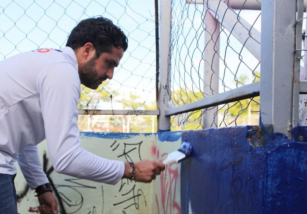 Con el objetivo de contribuir a generar espacios propicios para la interacción entre las y los ciudadanos, el titular de la Secretaría de Desarrollo Social en el Estado de Querétaro (SEDESOQ), Agustín Dorantes Lámbarri, encabezó el mejoramiento de la imagen de la cancha para fútbol rápido en el Parque Nuevo Horizonte, que consistió en limpieza y aplicación de pintura en los 240 metros cuadrados de barda perimetral que la rodea y que lucía llena de grafitti.