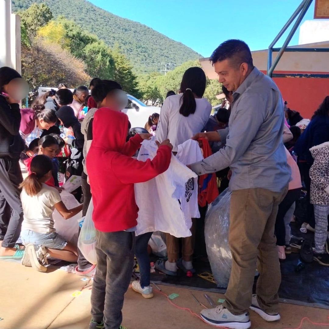 Durante su estancia, el regidor deseo a los presentes a nombre de la presidente municipal Yuni Benítez, unas felices fiestas y prospero año 2025, así mismo realizó la entrega de ropa, juguetes y algunos dulces para los niños.
