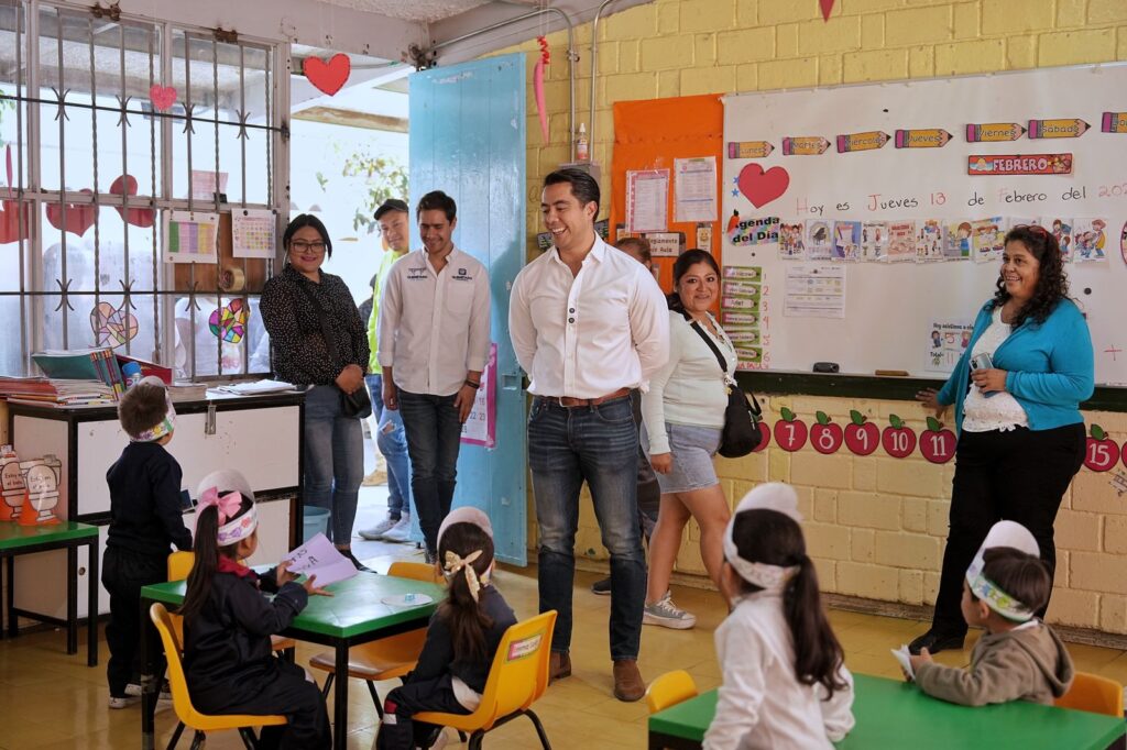 El presidente municipal de Querétaro, Felifer Macías, visitó el Jardín de Niños “Juan Escutia”, en la colonia Las Rosas, Delegación Centro Histórico, donde dialogó con directivos, maestros y padres de familia para fortalecer las condiciones del plantel y brindar mejores oportunidades de desarrollo a las niñas y niños en un Querétaro con orden y rumbo.