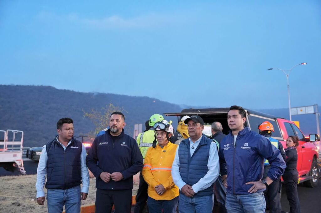 - Felifer Macías señaló que desde el primer minuto se generaron instrucciones para que Policía Municipal, Protección Civil y Servicios Públicos Municipales trabajaran de manera coordinada bajo la supervisión de Protección Civil del Gobierno del Estado, encabezado por Javier Amaya, y acompañando a los equipos de Protección Civil de los municipios de El Marqués, Corregidora y Huimilpan, para controlar el fuego.
