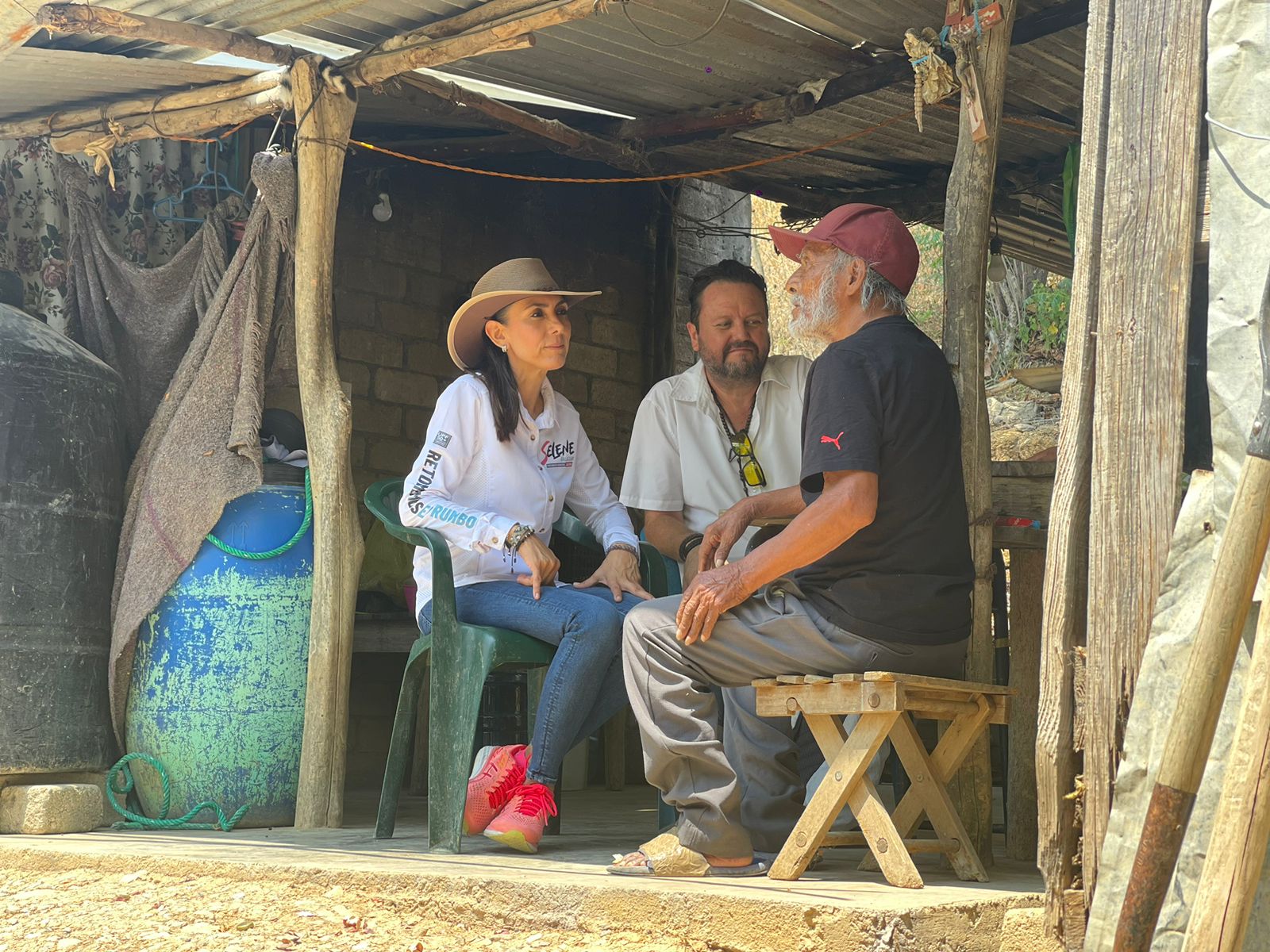 En compañía de su equipo de campaña, así como del candidato a regidor Heriberto Pedraza, la candidata a presidente municipal Selene Salazar, visito a vecinos de la comunidad de la Yerbabuena.