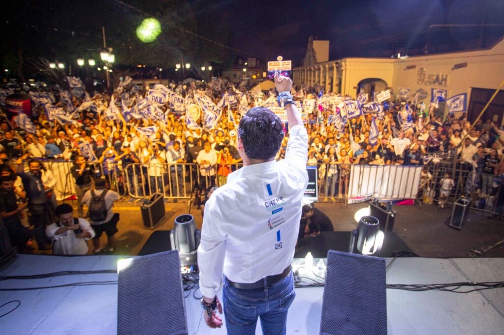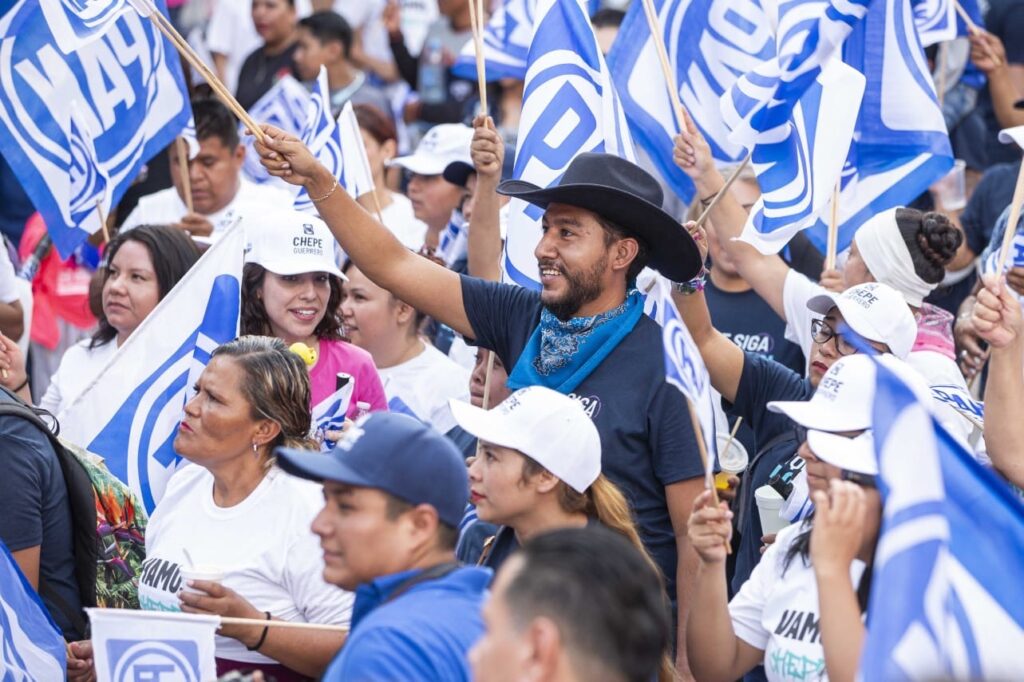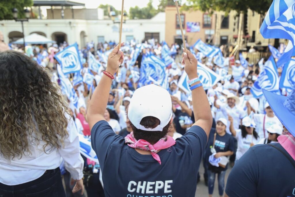 Salgamos a votar para, desde Corregidora, defender la tranquilidad de las familias, manifestó el candidato del Partido Acción Nacional a presidente municipal, Chepe Guerrero, durante el cierre de campaña que se llevó a cabo en el Jardín Principal de El Pueblito, ante miles de corregidorenses, a quienes llamó a salir a las urnas el próximo 2 de junio y emitir su voto a favor de las y los candidatos del PAN.