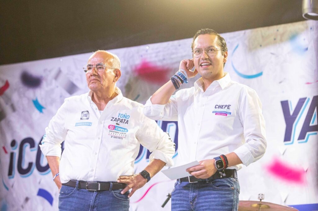 En el evento estuvieron presentes la presidenta del PAN estatal, Leonor Mejía; así como Toño Zapata, candidato a Diputado localpor el VIII Distrito, quien en su turno al micrófono, refrendó su apoyo al municipio para hacerlo crecer y continuar con su progreso día con día, además solicitó el voto masivo para el PAN pues dijoestá en juego el futuro del país.