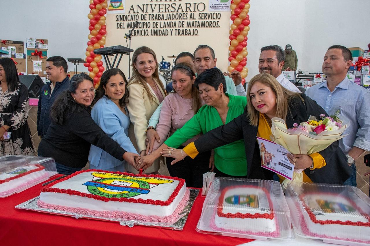 La Presidenta Municipal de Landa de Matamoros, Yuni Benítez, participó en la celebración del 29 aniversario del Sindicato de Trabajadores al Servicio del Municipio, una convivencia que se realiza año con año con el propósito de fortalecer los lazos entre las y los trabajadores sindicalizados y su dirigencia, promoviendo un ambiente de cercanía, respeto y unidad.